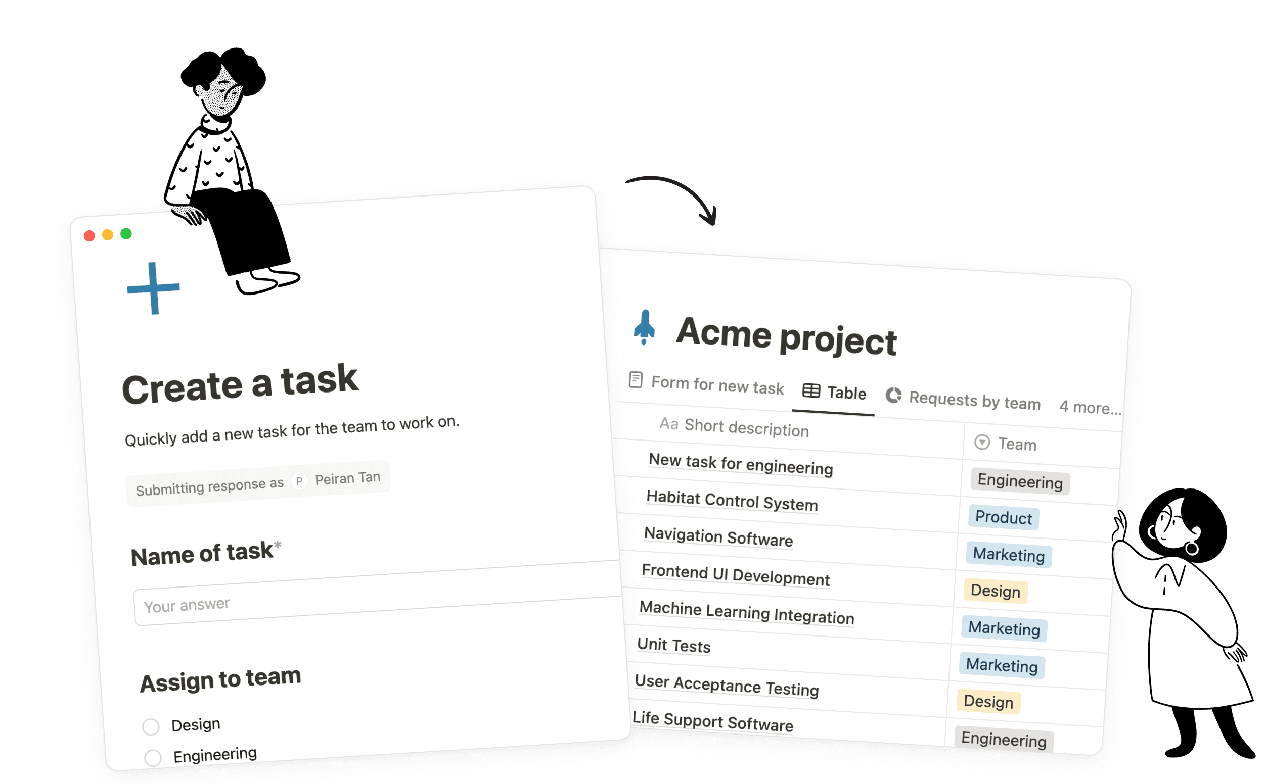 Use forms to trigger automated actions, like assigning new tasks to teammates.